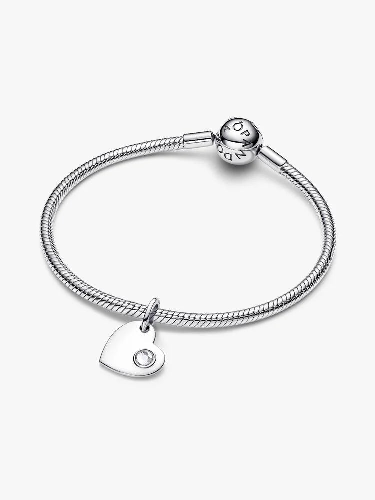 Pandora April Heart Clear Stone Dangle Charm