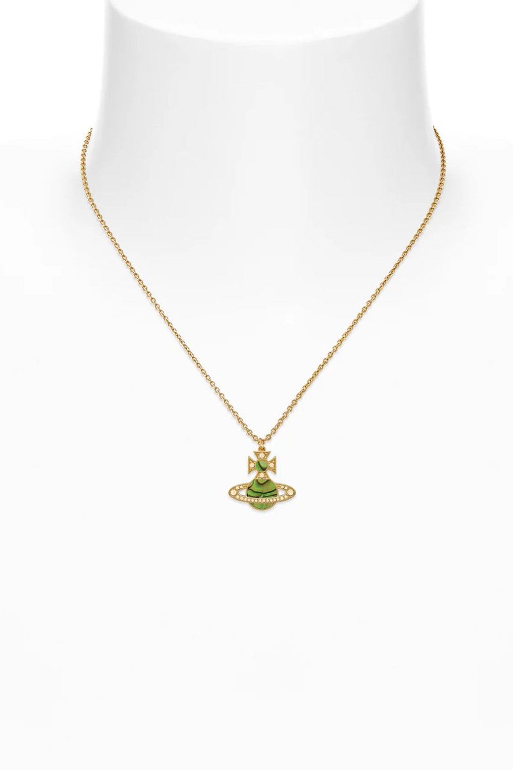Vivienne Westwood Rina Pendant Gold Tone, Light Peach Crystal & Peridot Mother of Pearl